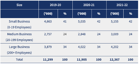 According to the Australian Bureau of Statistics, small business (defined by those employing 0-19 staff), employed over $5million people, which is 42% of the private workforce in 2021-22.